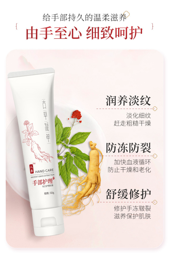 正是因?yàn)橛辛艘陨蟽?yōu)質(zhì)的成分,使得古草凝萃人參護(hù)手霜兼具淡化細(xì)紋,防止肌膚粗糙干燥,能修護(hù)手凍皸裂,滋養(yǎng)保護(hù)肌膚,改善暗沉還有抗老的多重效用。