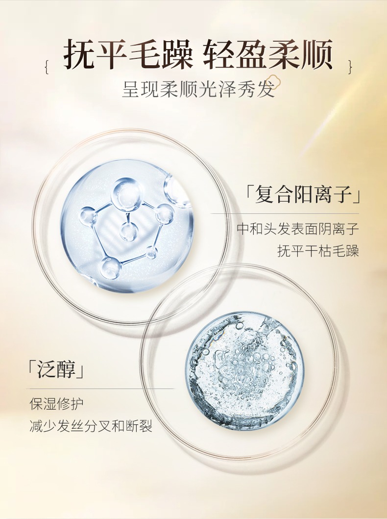 2、復(fù)合陽離子:能中和頭發(fā)表面的陰離子,進(jìn)一步撫平干枯毛躁的頭發(fā)。