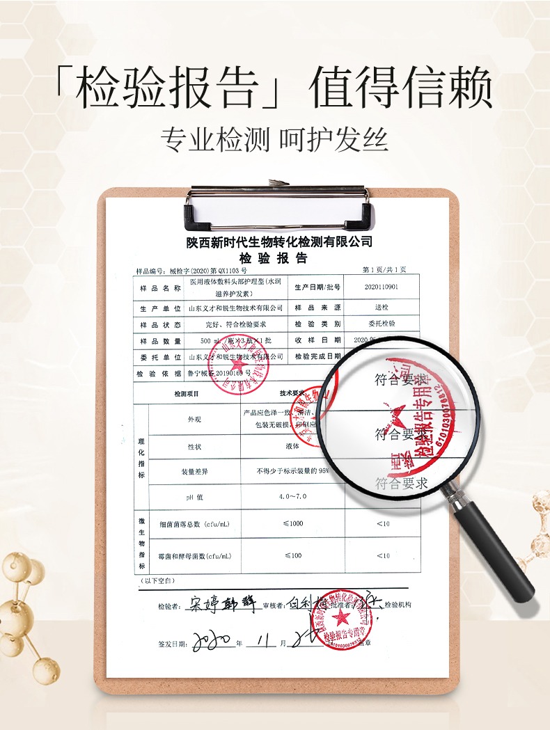 正因?yàn)樗钦嬲牧闾砑幼o(hù)發(fā)素,所以通過了第三方權(quán)威機(jī)構(gòu)的專業(yè)檢測(cè)!這一點(diǎn)給了消費(fèi)者極大的保障!品質(zhì)值得信賴!