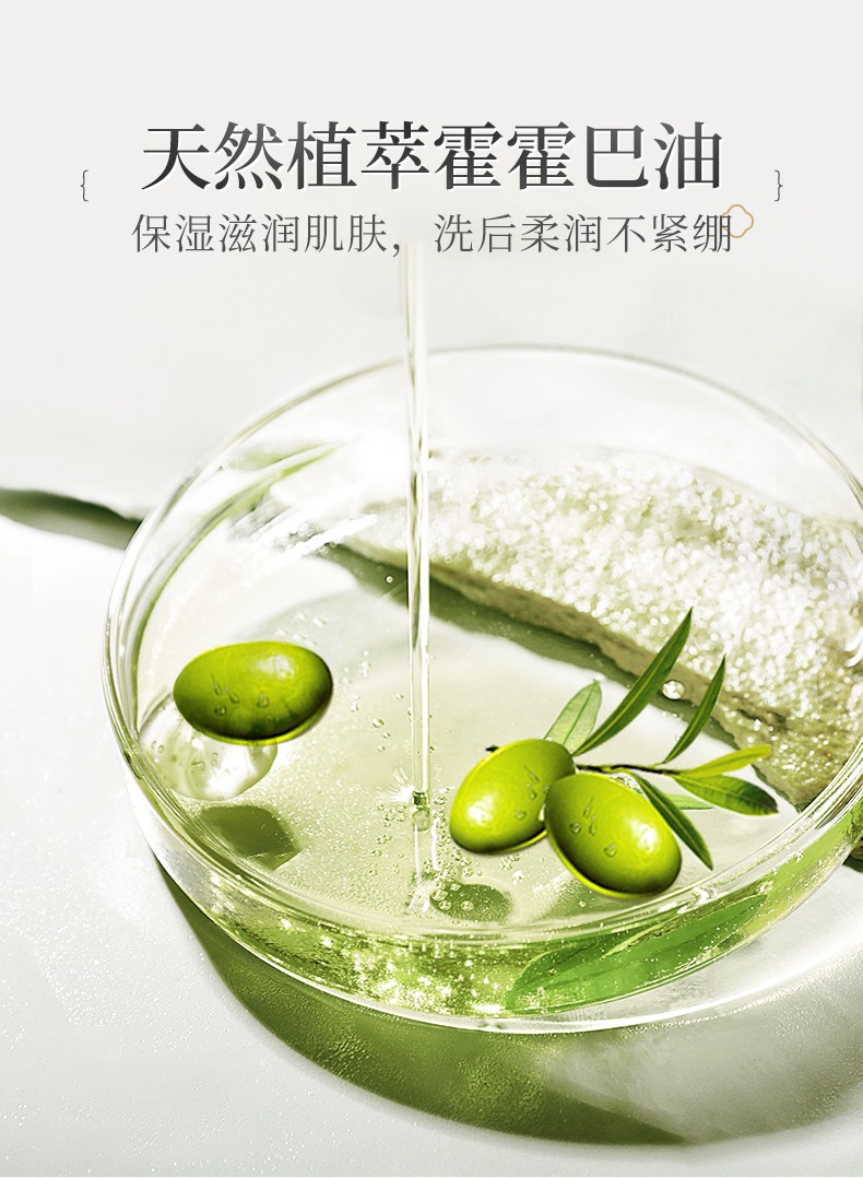 2、霍霍巴油:具有優(yōu)良潤(rùn)滑能力,能保濕滋潤(rùn)肌膚,洗后柔潤(rùn)不緊繃。