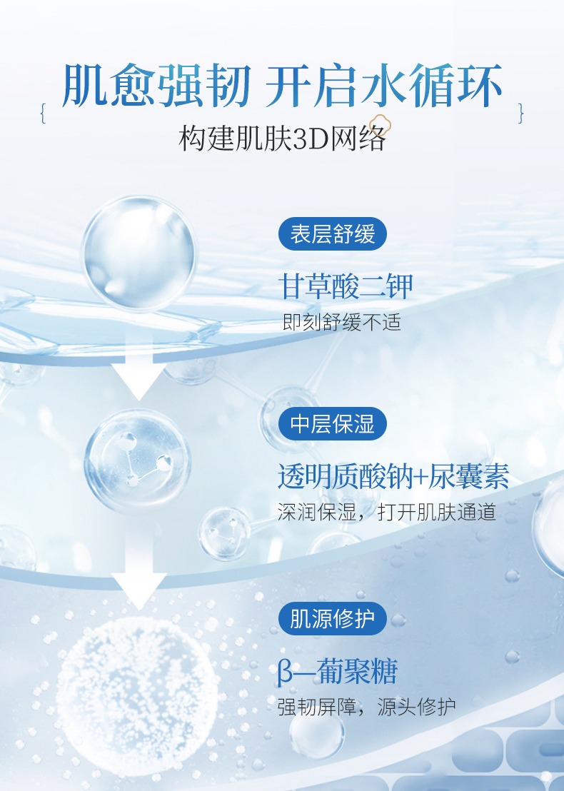 此外,古草凝萃透明質酸鈉保濕貼還嚴選了以下三種醫(yī)藥級成分(甘草酸二鉀+尿囊素+β-葡聚糖),能構建肌膚補水3D網(wǎng)絡,開啟肌膚水循環(huán)!