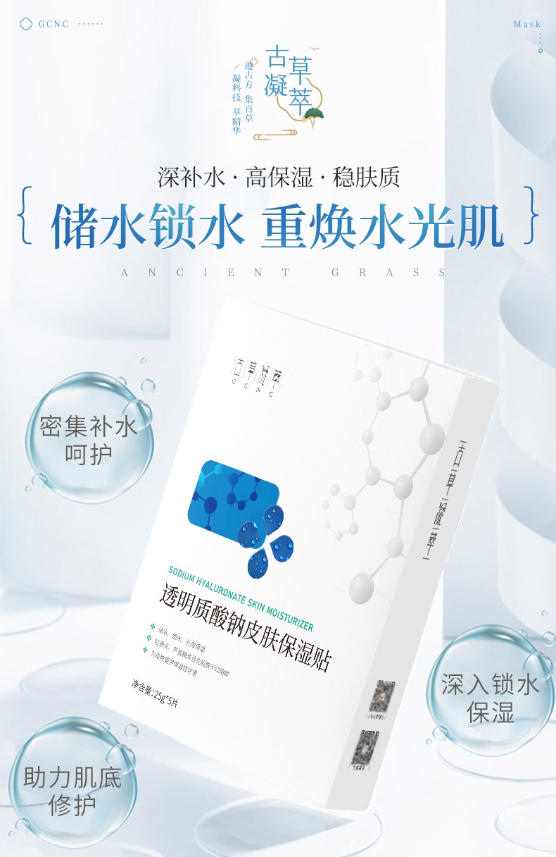 玻尿酸是大家公認的補水神器,但脫離了保濕的補水,留不住水分,補再多也沒有用。古草凝萃透明質酸鈉保濕貼采用高活性小分子玻尿酸,它屬華熙生物專研成分納諾miniHA,其中大分子HA能形成透氣水化膜,減少內(nèi)部水分流失;小分子HA可在肌膚表面補水同時在肌膚內(nèi)部輸送水分;miniHA能直達肌底層深入補水?稍谄つw上構建立體網(wǎng)狀儲水海綿層,精準定位皮膚的不同層次,外層補水,內(nèi)層鎖水,層層保濕,層層修護。更重要的是運用了國際先進的酶切法,能直達肌底層深度補水,達到真正補水并鎖水的效果。