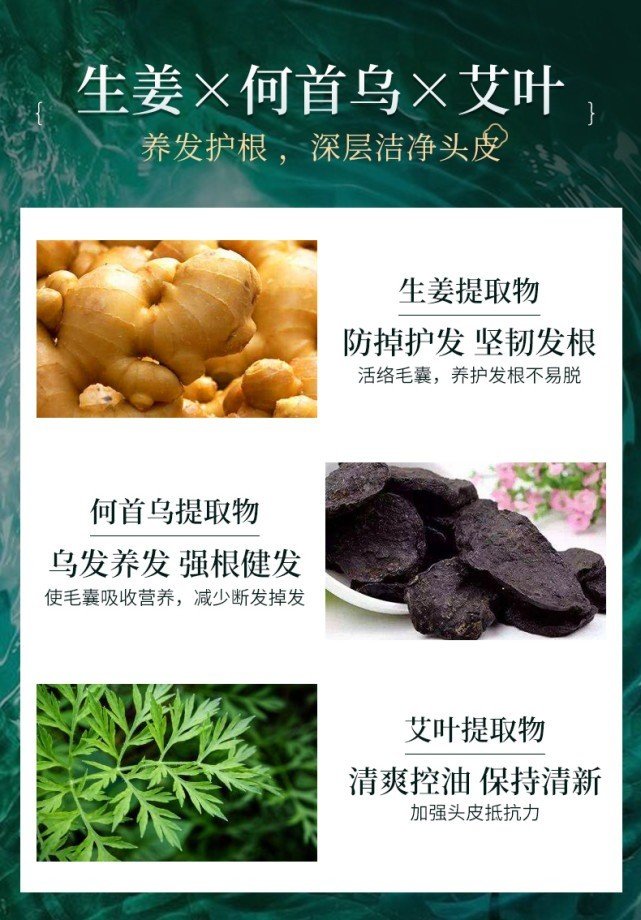 這款古草凝萃生姜洗發(fā)水的成分是極其精簡的,不添加硅油等損壞發(fā)質(zhì)的成分。其中包括有生姜、何首烏、艾葉,能起到養(yǎng)發(fā)護根,深層潔凈頭皮的功效。