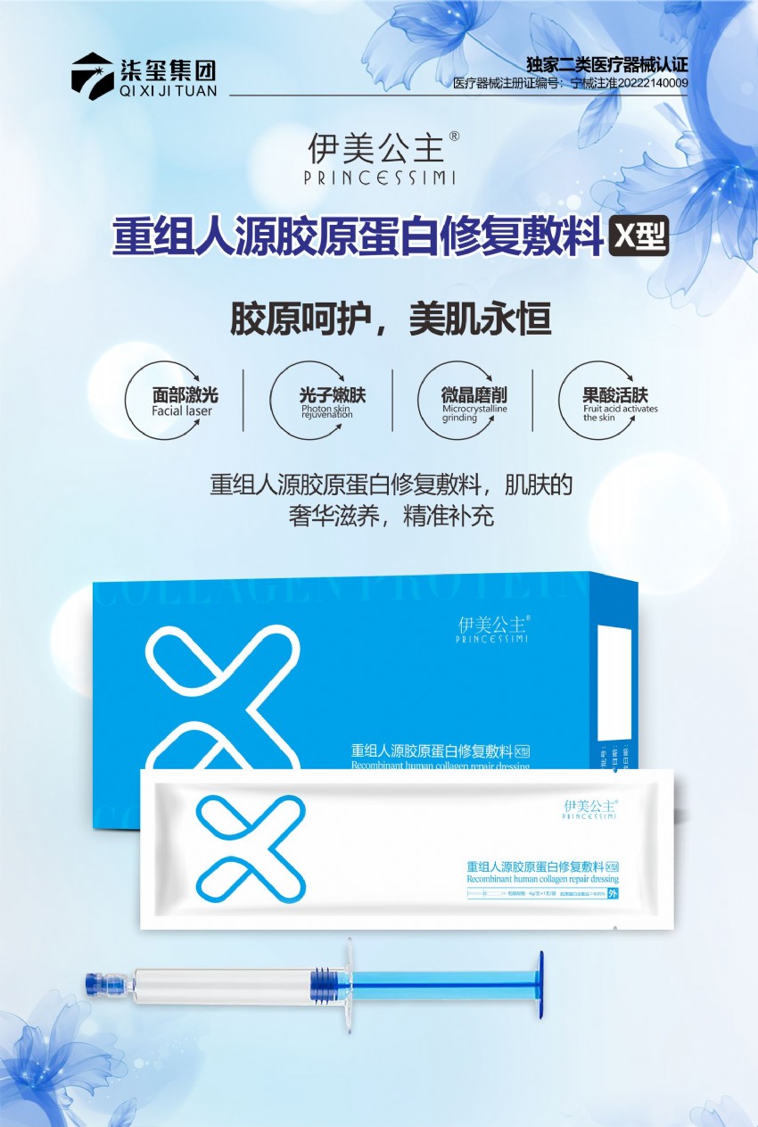 二、產(chǎn)品名稱:伊美公主(重組人源膠原蛋白修復(fù)敷料X型)