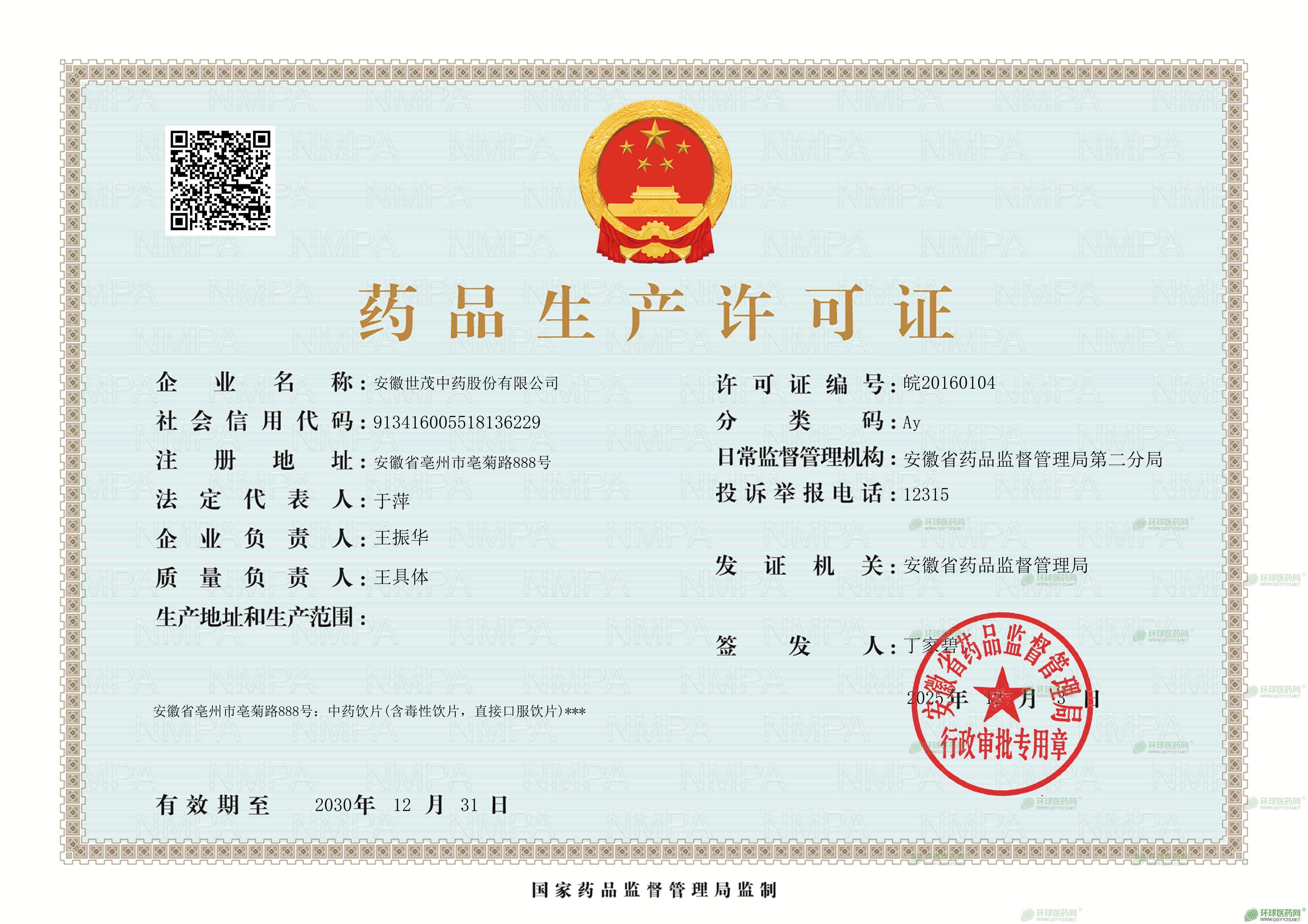 發(fā)證機(jī)關(guān): 安徽省藥品監(jiān)督管理局