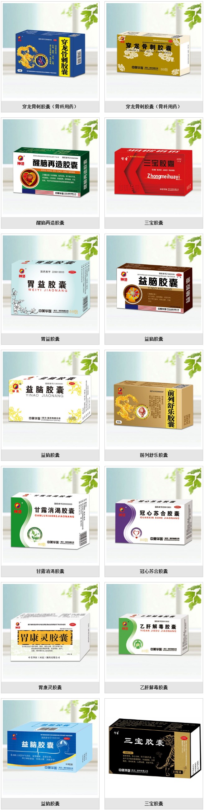 目前主要產(chǎn)品有神濟(jì)三寶膠囊、醒腦再造膠囊、益腦膠囊、胃益膠囊、冠心蘇合膠囊、風(fēng)痛安膠囊、乙肝解毒膠囊、小兒退熱口服液、消栓口服液、胃康靈膠囊、前列舒樂膠囊、甘露消渴膠囊、穿龍骨刺膠囊等十三個(gè)品種,其中國家中藥保護(hù)品種2個(gè),國家醫(yī)保類品種4個(gè)。產(chǎn)品發(fā)往北京、河北、河南、廣東、上海、遼寧、吉林等二十多個(gè)省、市、自治區(qū)。