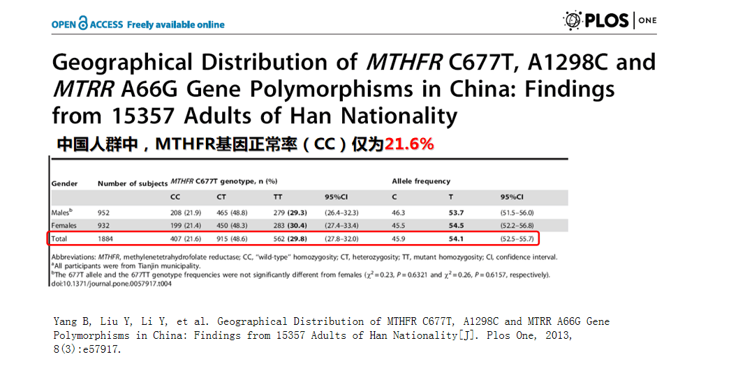 計(jì)劃生育是我國(guó)的一項(xiàng)基本國(guó)策,補(bǔ)充葉酸是重中之重。近年來(lái),我國(guó)新生兒出生缺陷發(fā)生率呈上升趨勢(shì)。臨床研究發(fā)現(xiàn)中國(guó)人中有78.4%人口存在葉酸代謝障礙,如下圖所示: