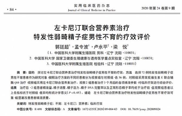 作用機理:左卡尼汀聯(lián)合營養(yǎng)素治療特發(fā)性弱畸精子癥男性不育具有良好療效,可有效提高正常形態(tài)精子比例,此外營養(yǎng)素合劑能夠及時補充維持精子活力、精液濃度、受精功能、附睪功能所必須的微量元素,對于改善患者精液質(zhì)量和提高女方受孕率具有重要意義。因此,左卡尼汀聯(lián)合營養(yǎng)素治療特發(fā)性弱畸精子癥男性不育是一種理想的治療方案,可在臨床推廣應(yīng)用。