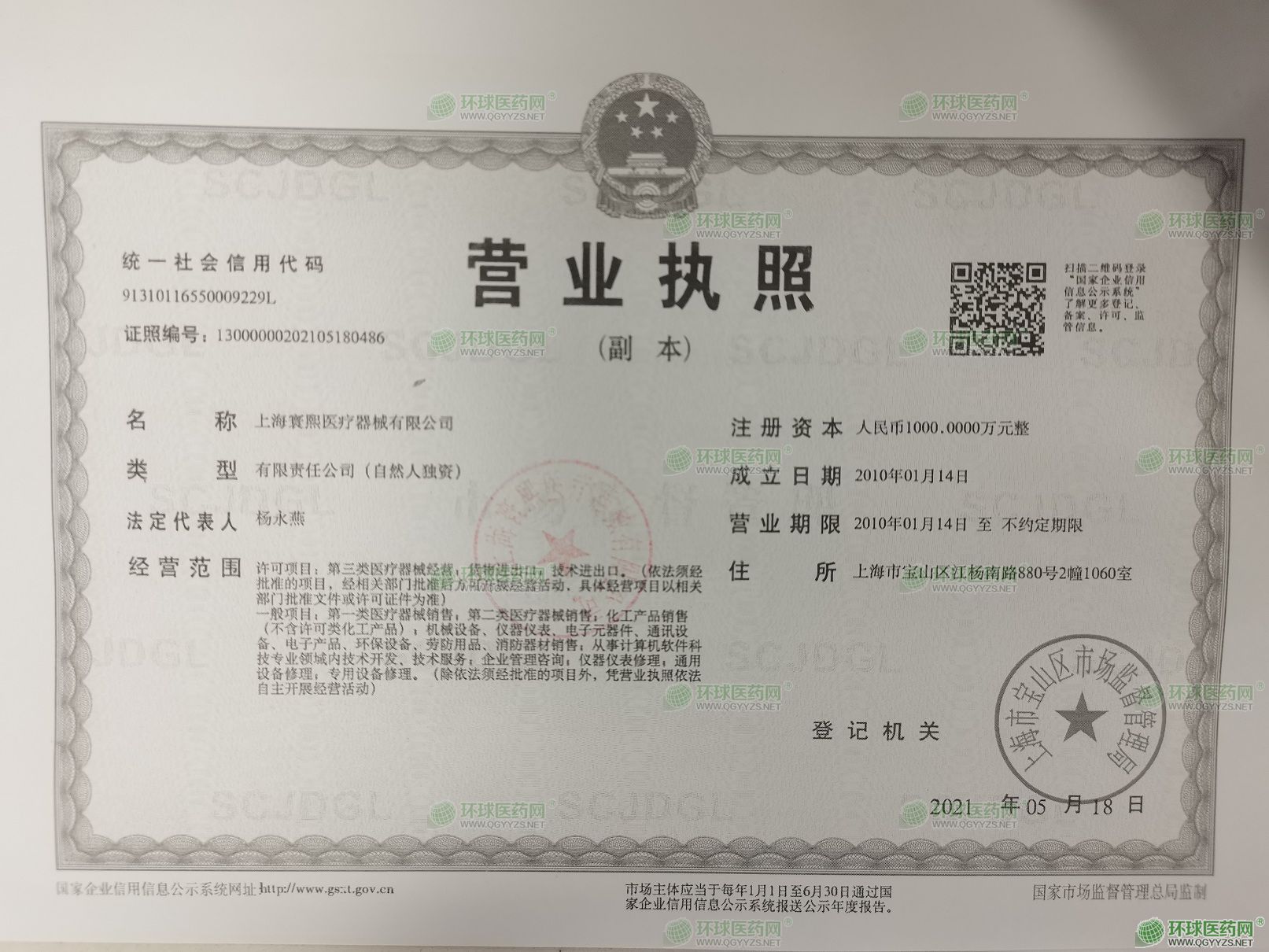 上海寰熙醫(yī)療器械有限公司成立于2010年01月14日,注冊地位于上海市寶山區(qū)江楊南路880號2幢1060室,法定代表人為楊永燕。經(jīng)營范圍包括許可項目:第三類醫(yī)療器械經(jīng)營;貨物進出口;技術(shù)進出口。(依法須經(jīng)批準的項目,經(jīng)相關(guān)部門批準后方可開展經(jīng)營活動,具體經(jīng)營項目以相關(guān)部門批準文件或許可證件為準)一般項目:**類醫(yī)療器械銷售;第二類醫(yī)療器械銷售;化工產(chǎn)品銷售(不含許可類化工產(chǎn)品);機械設(shè)備、儀器儀表、電子元器件、通訊設(shè)備、電子產(chǎn)品、環(huán)保設(shè)備、勞防用品、消防器材銷售;從事計算機軟件科技專業(yè)領(lǐng)域內(nèi)技術(shù)開發(fā)、技術(shù)服務(wù);企業(yè)管理咨詢;儀器儀表修理;通用設(shè)備修理;專用設(shè)備修理。(除依法須經(jīng)批準的項目外,憑營業(yè)執(zhí)照依法自主開展經(jīng)營活動)上海寰熙醫(yī)療器械有限公司對外投資3家公司,具有1處分支機構(gòu)。