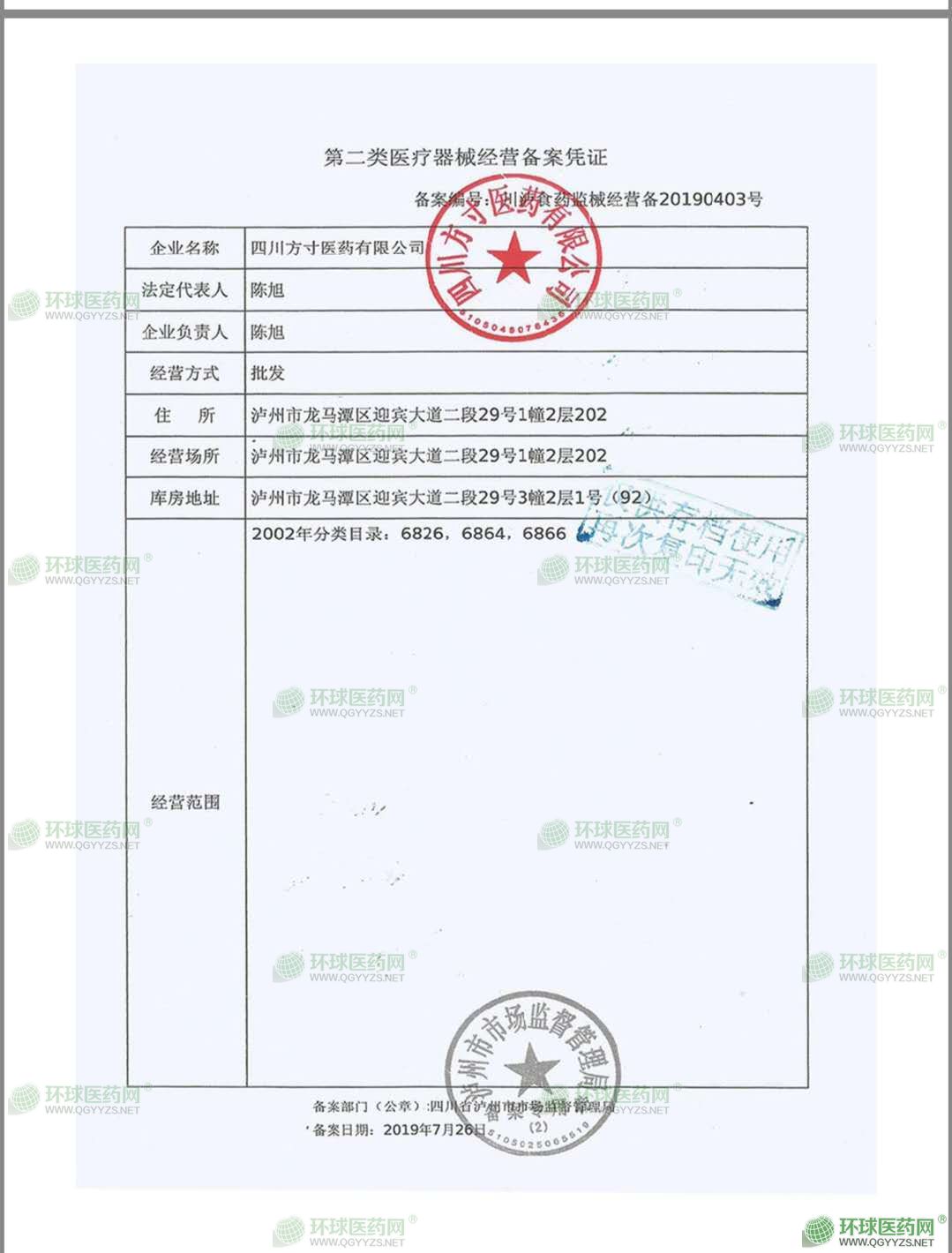 四川方寸醫(yī)藥有限公司成立于2015年11月25日,注冊地位于瀘州市龍馬潭區(qū)迎賓大道二段29號3幢2層2號(自主申報),法定代表人為陳旭。經(jīng)營范圍包括中藥、保健用品、消毒產(chǎn)品的開發(fā)、技術(shù)咨詢及成果轉(zhuǎn)讓;生物技術(shù)推廣服務(wù);一類醫(yī)療器械的生產(chǎn)、銷售;貨物進出口業(yè)務(wù);批發(fā)兼零售:預(yù)包裝食品及散裝食品;銷售:日用品、化妝品、衛(wèi)生用品、消毒用品、保健用品、保健食品、醫(yī)療器械。(依法須經(jīng)批準的項目,經(jīng)相關(guān)部門批準后方可開展經(jīng)營活動)