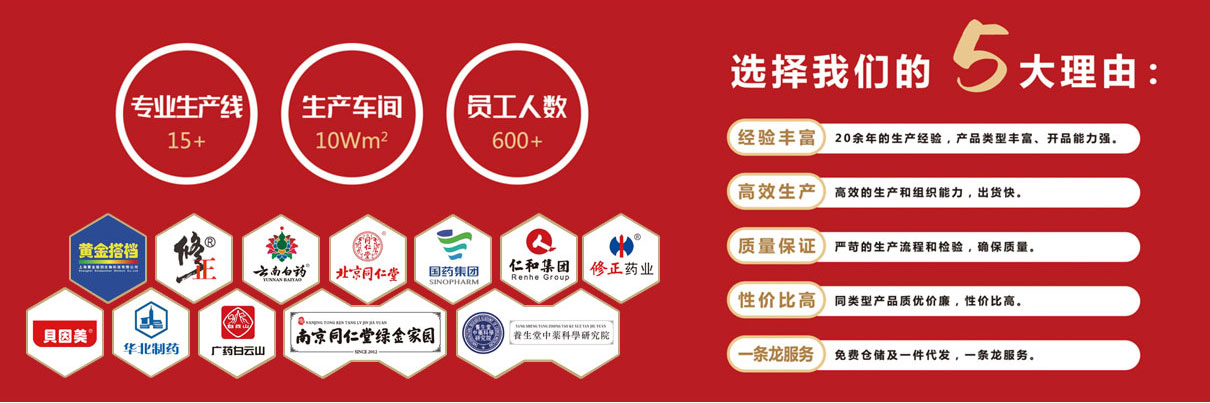 在“全民養(yǎng)生”的時代背景下,依托中藥材專業(yè)市場的天然優(yōu)勢,公司以“藥食同源”中藥為原料,深耕“功能性”保健食品的研究開發(fā)和深加工。公司占地面積50畝,現(xiàn)有食品標準凈化生產(chǎn)車間100000平方,倉儲、冷庫面積50000平方。擁有15條自主化專業(yè)產(chǎn)品類型生產(chǎn)線,建立了科學(xué)完備的管理、生產(chǎn)和質(zhì)量控制體系。