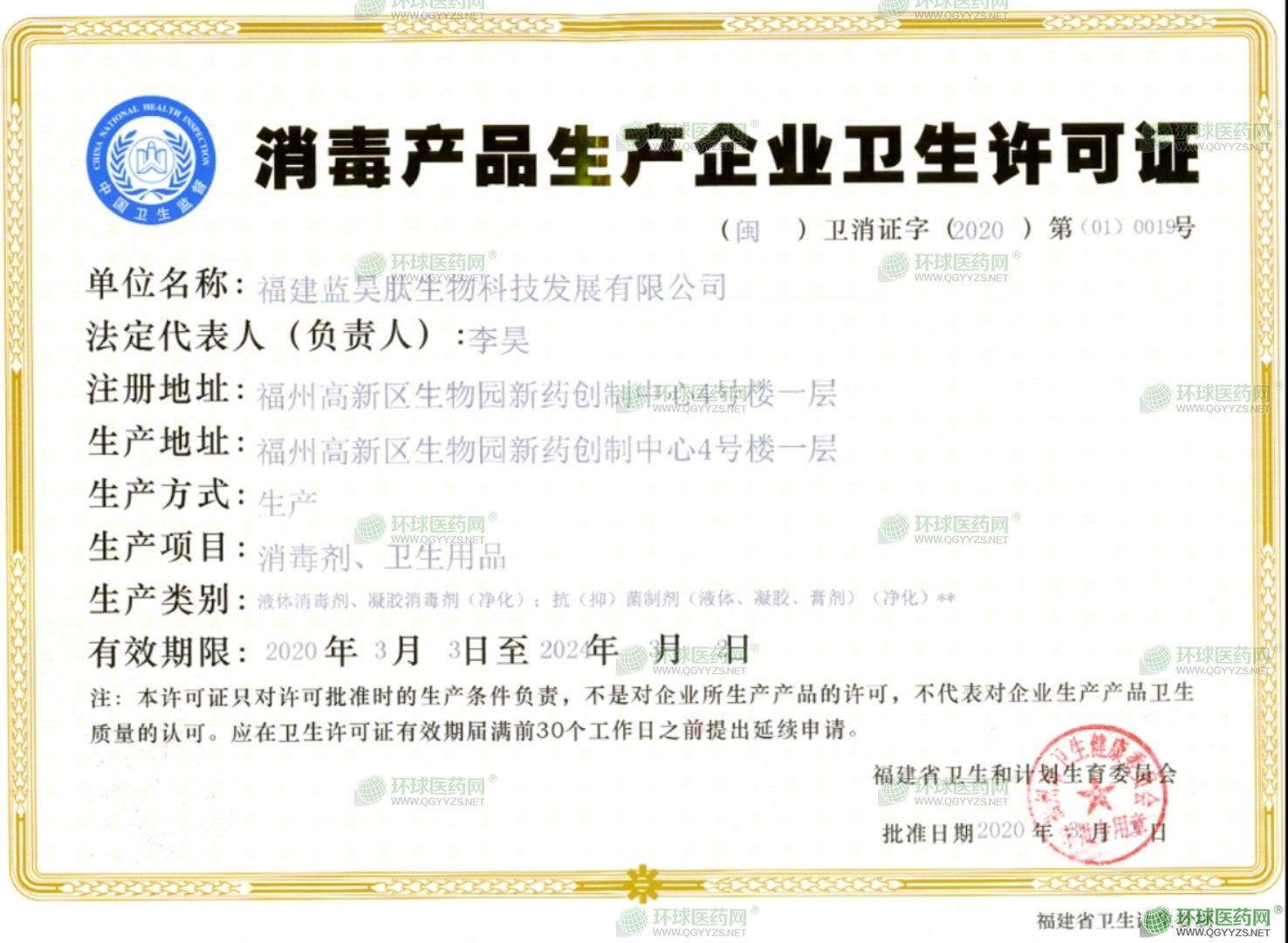 - 消毒產品生產企業(yè)衛(wèi)生許可證