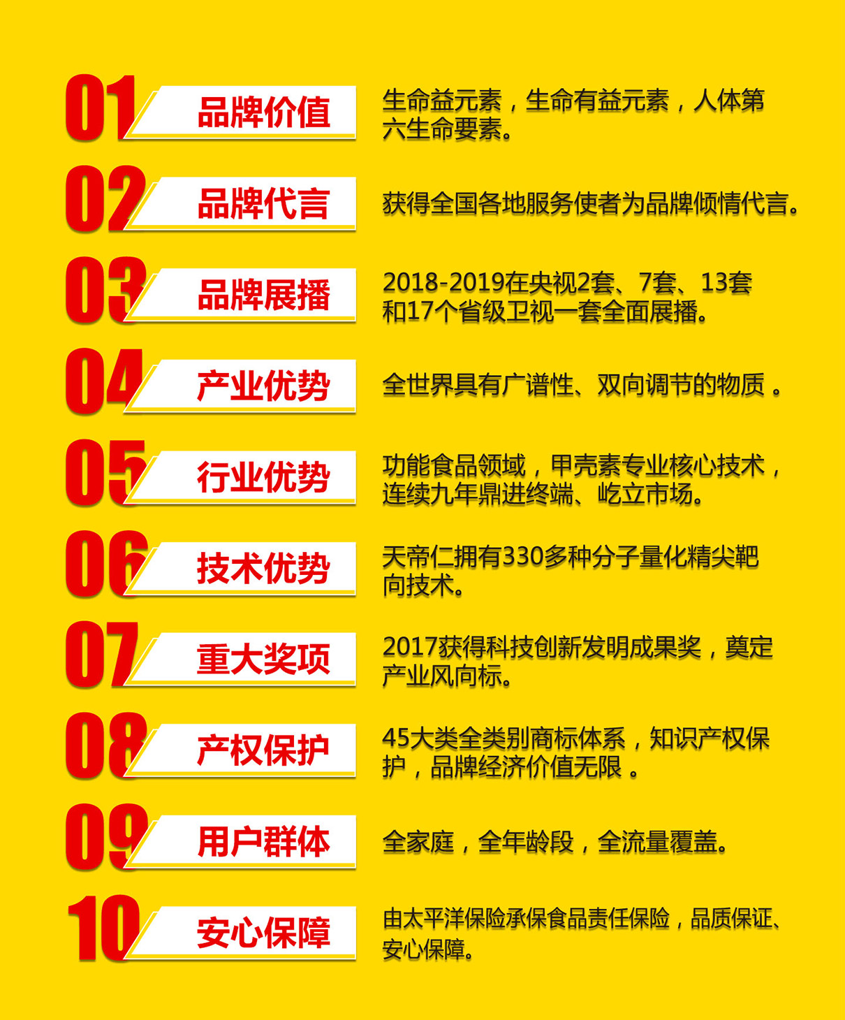 天帝仁集團(tuán)順勢(shì)推出重磅產(chǎn)品——生命益元素®幾丁寡糖系列產(chǎn)品,是開拓新市場(chǎng)的剛需特色產(chǎn)品!