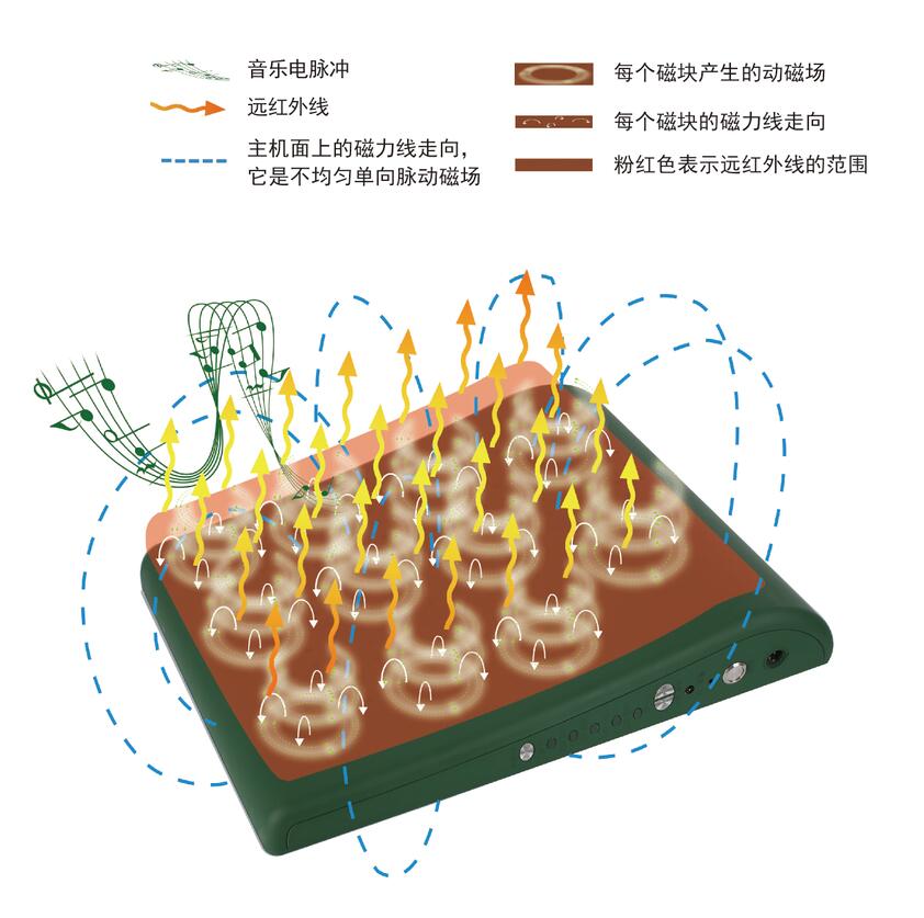 一臺(tái)身心健康治療儀同時(shí)產(chǎn)生的遠(yuǎn)紅外線的不可見光、熱、不均勻的脈動(dòng)磁場(chǎng)、低中頻脈沖電流、刺激穴位等多種物理因子同時(shí)作用于人體 ,它們?cè)隗w內(nèi)