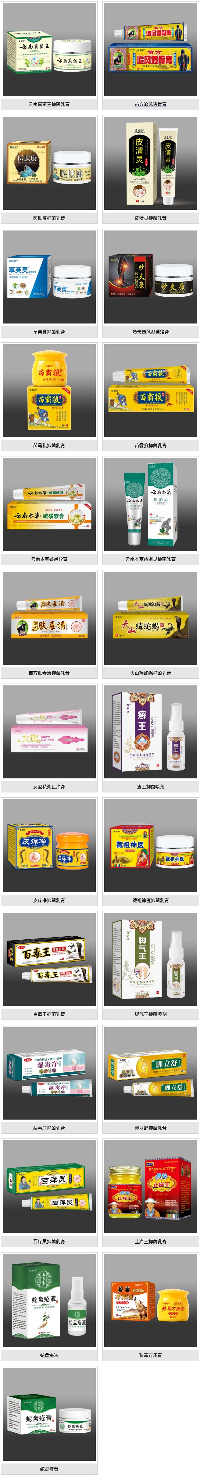 主要成分:天山雪蓮提取物、苦參提取物、五毒草提取物、山茶提取物、狼毒提取物、敗醬草提取物、薄荷腦、凡士林、甘油、單甘酯、硬酯酸、醋酸己定、純化水等。