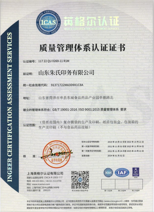 山東朱氏藥業(yè)工廠通過 ISO 9001+14001 雙認證!產品質量符合FDA標準,出口無憂