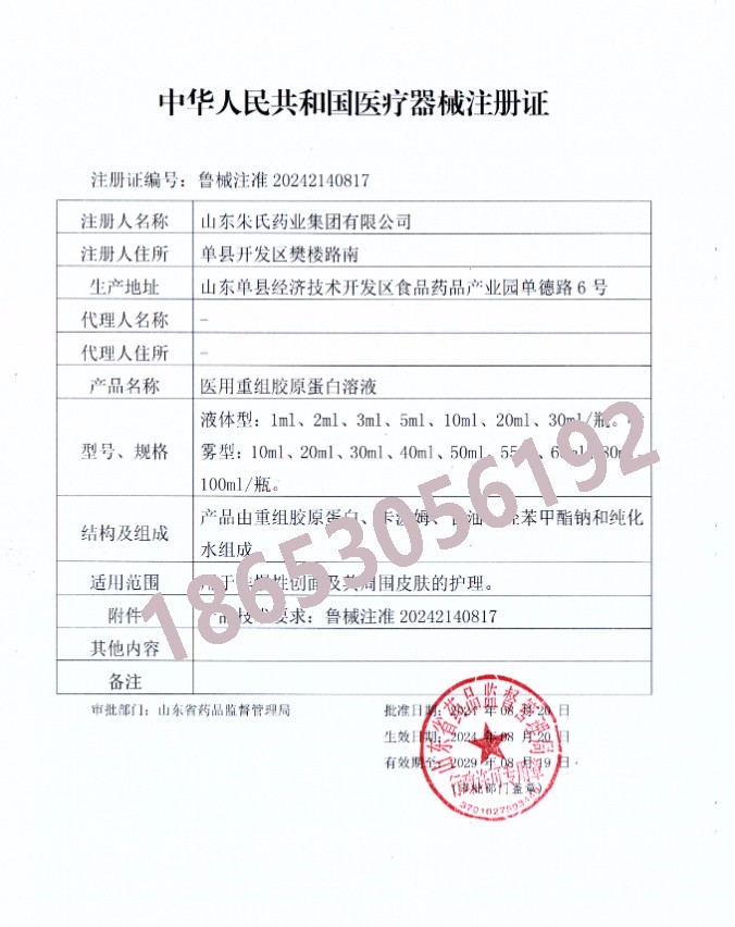 醫(yī)用重組膠原蛋白溶液添新證!山東朱氏藥業(yè)集團斬獲醫(yī)療器械注冊證