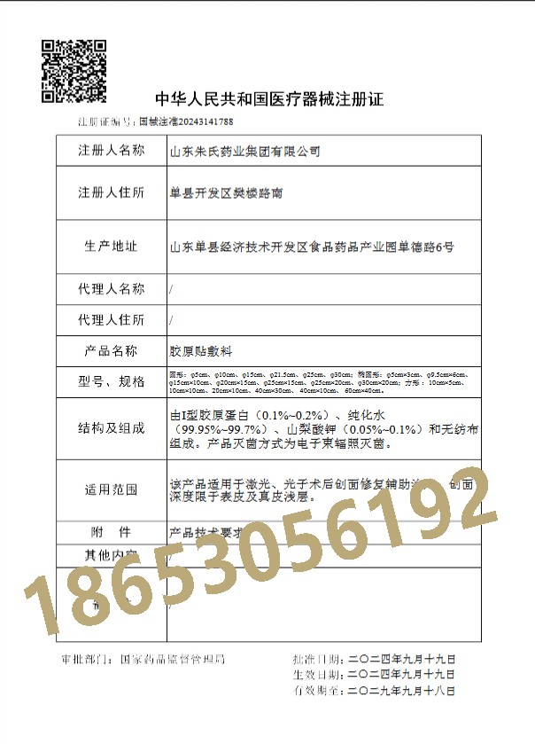 山東朱氏藥業(yè)集團(tuán)自主研發(fā)的三類醫(yī)療器械膠原貼敷料(注冊(cè)證編號(hào):國(guó)械注準(zhǔn)2023xxxxxx)正式獲批,專為光電治療(激光/光子/射頻)術(shù)后創(chuàng)面修復(fù)設(shè)計(jì),通過(guò)國(guó)家藥監(jiān)局嚴(yán)格臨床驗(yàn)證,成為醫(yī)美機(jī)構(gòu)與公立醫(yī)院皮膚科的**標(biāo)準(zhǔn)化術(shù)后護(hù)理方案。