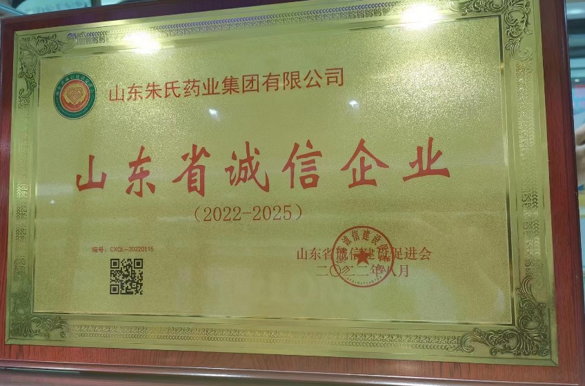 朱氏藥業(yè)集團(tuán)榮獲“山東省誠(chéng)信品牌企業(yè)”稱號(hào)