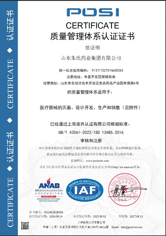 山東朱氏藥業(yè)集團(tuán)研發(fā)生產(chǎn)基地通過(guò)ISO13485認(rèn)證,樹(shù)立醫(yī)療器械級(jí)貼牌新標(biāo)桿