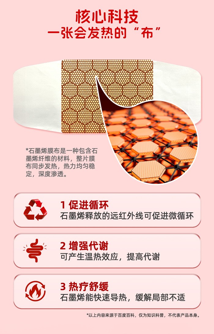 告別傳統(tǒng)暖貼的忽冷忽熱!石墨烯導熱技術,均勻滲透腰腹,從根源驅散寒氣,經期也能活力滿滿~