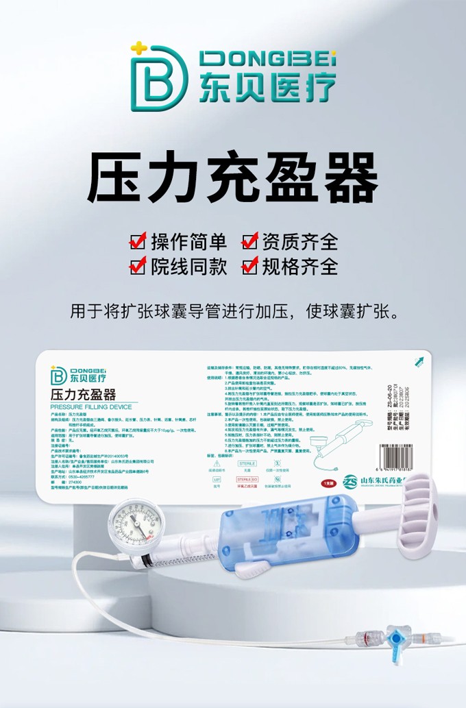 血管疾病治療:在冠狀動(dòng)脈血管成形術(shù)等介入手術(shù)中,東貝醫(yī)療壓力充盈器發(fā)揮著重要作用。它能夠?qū)U(kuò)張球囊導(dǎo)管進(jìn)行加壓,使球囊擴(kuò)張,從而有效治療動(dòng)脈狹窄或阻塞等血管疾病。