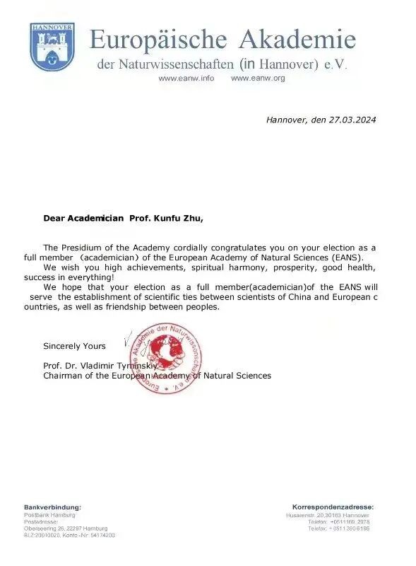 榮譽(yù)與責(zé)任:朱坤福先生當(dāng)選歐洲自然科學(xué)院院士