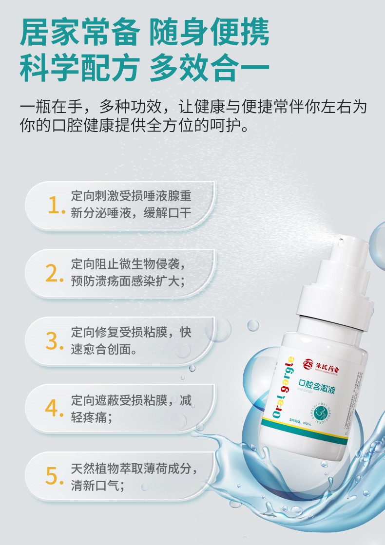 朱氏藥業(yè)口腔含漱液以卡波姆、丙二醇等為核心成分,通過物理成膜技術(shù)形成保護(hù)層,有效隔離外界刺激,緩解疼痛并加速愈合。其無酒精配方與天然抑菌成分兼顧功效與舒適體驗(yàn),適用于醫(yī)療場景與家庭精細(xì)化護(hù)理。