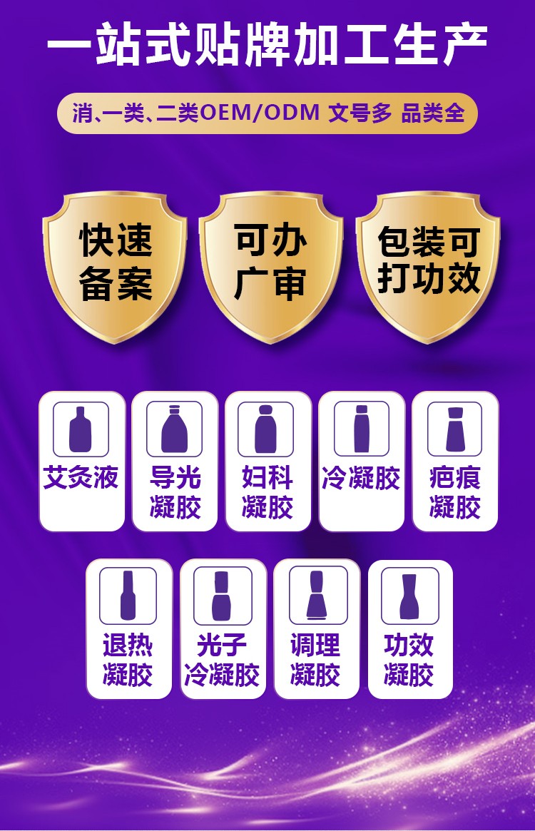 持有國家藥監(jiān)局頒發(fā)的二類醫(yī)療器械生產(chǎn)許可證,具備消字號、妝字號產(chǎn)品生產(chǎn)資質(zhì),產(chǎn)品注冊證、備案憑證齊全。