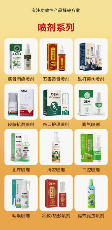 - 噴劑凝膠水劑精油OEM代加工廠家 批準(zhǔn)文號(hào): 晉械注準(zhǔn)20242090145規(guī) 格: 2g、3g、5g、10g、15g、20g、30g、40g、50g、60g、70g、80g可定制