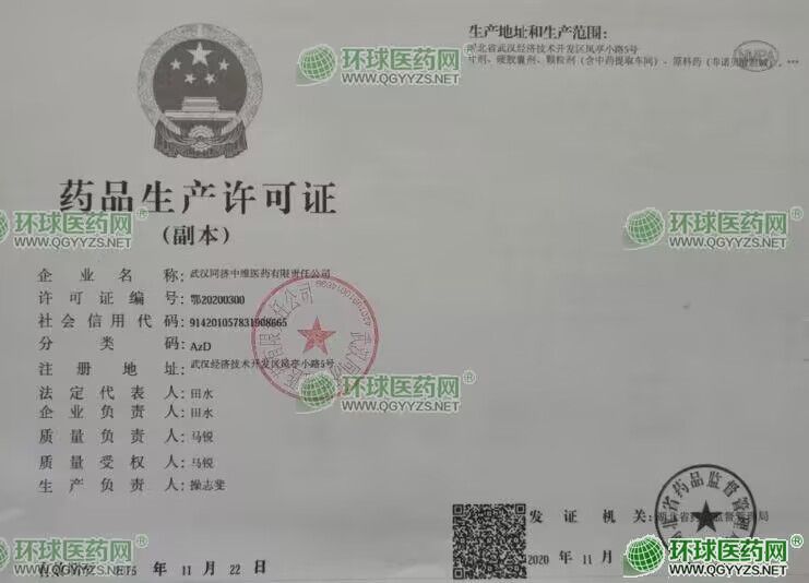 發(fā)證機(jī)關(guān): 湖北省藥品監(jiān)督管理局