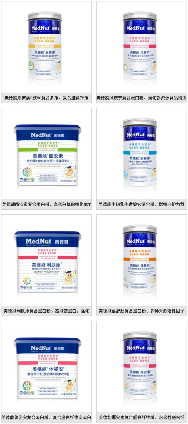 在臨床營養(yǎng)膳食領(lǐng)域,復(fù)旦奧醫(yī)自主研發(fā)知識產(chǎn)權(quán)系列精品:“美德能臨床營養(yǎng)®”內(nèi)科?婆R床營養(yǎng)膳食系列(涵蓋消化內(nèi)科、神經(jīng)內(nèi)科、內(nèi)分泌科、心血管內(nèi)科、腎內(nèi)科、呼吸內(nèi)科、精神科、風(fēng)濕免疫科、老年病科、傳染感染科、康復(fù)科、皮膚性病科、眼/耳鼻咽喉/口腔科、職業(yè)病科等)@MedNut FSMP®;“美德能臨床營養(yǎng)®”外科腫瘤重癥臨床營養(yǎng)膳食系列(涵蓋腫瘤、普外科、圍手術(shù)期ERAS、神經(jīng)外科、心胸外科、泌尿外科、骨科、燒傷科、器官移植、整形醫(yī)美、運動醫(yī)學(xué)、麻醉疼痛科、醫(yī)學(xué)影像科、重癥醫(yī)學(xué)科等)@MedNut FSMP®;“美德能臨床營養(yǎng)®”兒科婦產(chǎn)科生殖醫(yī)學(xué)臨床營養(yǎng)膳食系列(涵蓋兒內(nèi)科、兒外科、兒童保健科、產(chǎn)科、婦科、婦女保健科、優(yōu)生優(yōu)育科、生殖醫(yī)學(xué)科等)@MedNut FSMP®。
