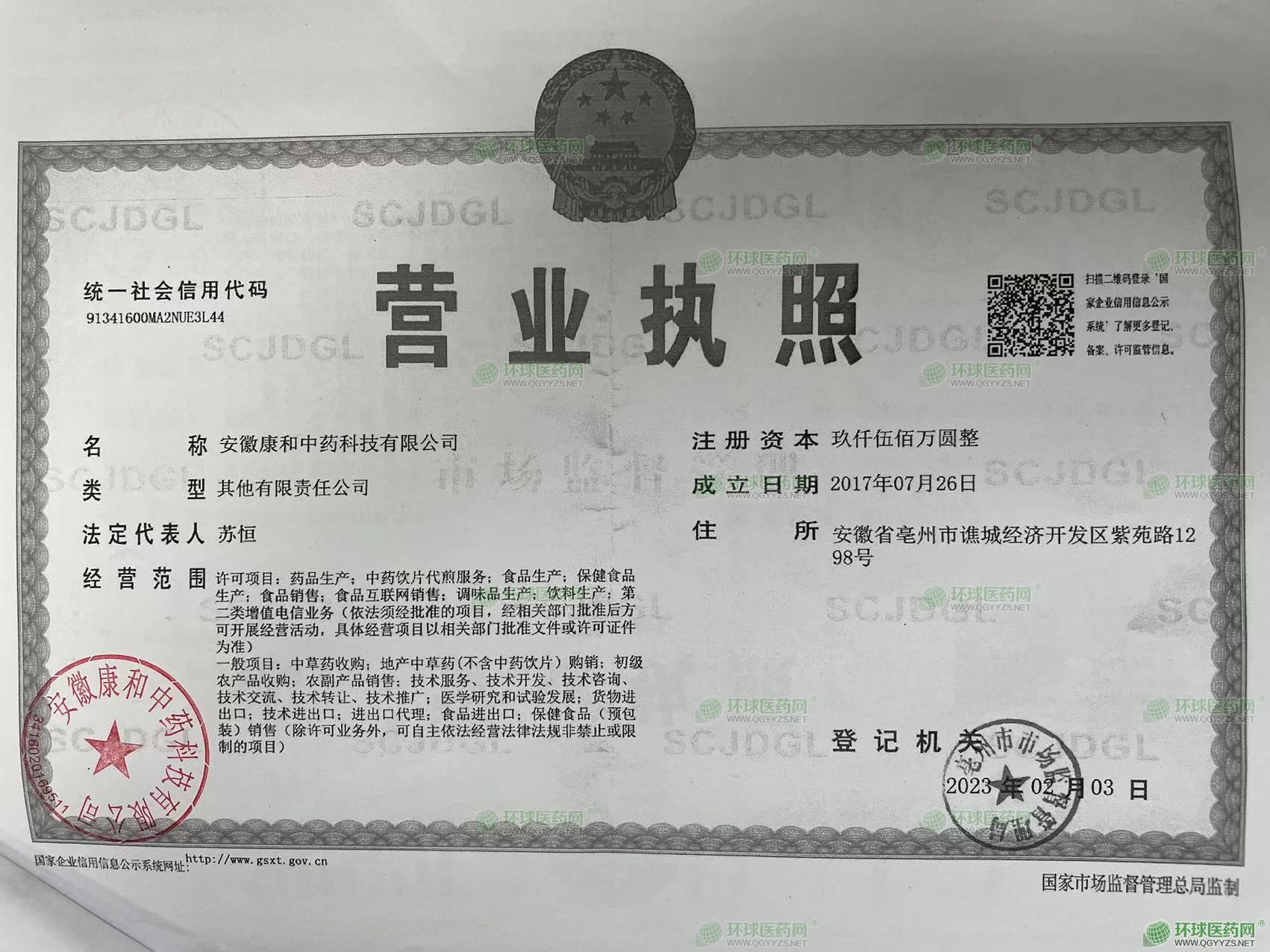 注冊地址: 安徽省亳州市譙城經(jīng)濟(jì)開發(fā)區(qū)紫苑路1298號(hào)