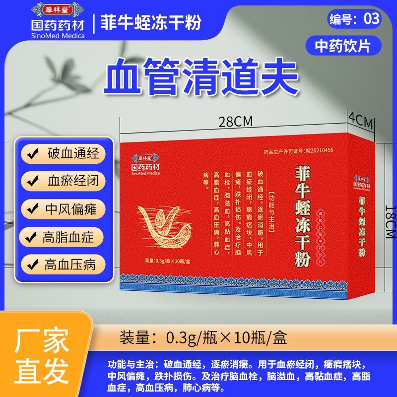 道地優(yōu)勢(shì):精選優(yōu)質(zhì)菲牛蛭為原料,采用低溫冷凍干燥工藝制成,保留其天然活性成分水蛭素,純度高、品質(zhì)穩(wěn)定,無(wú)多余添加。