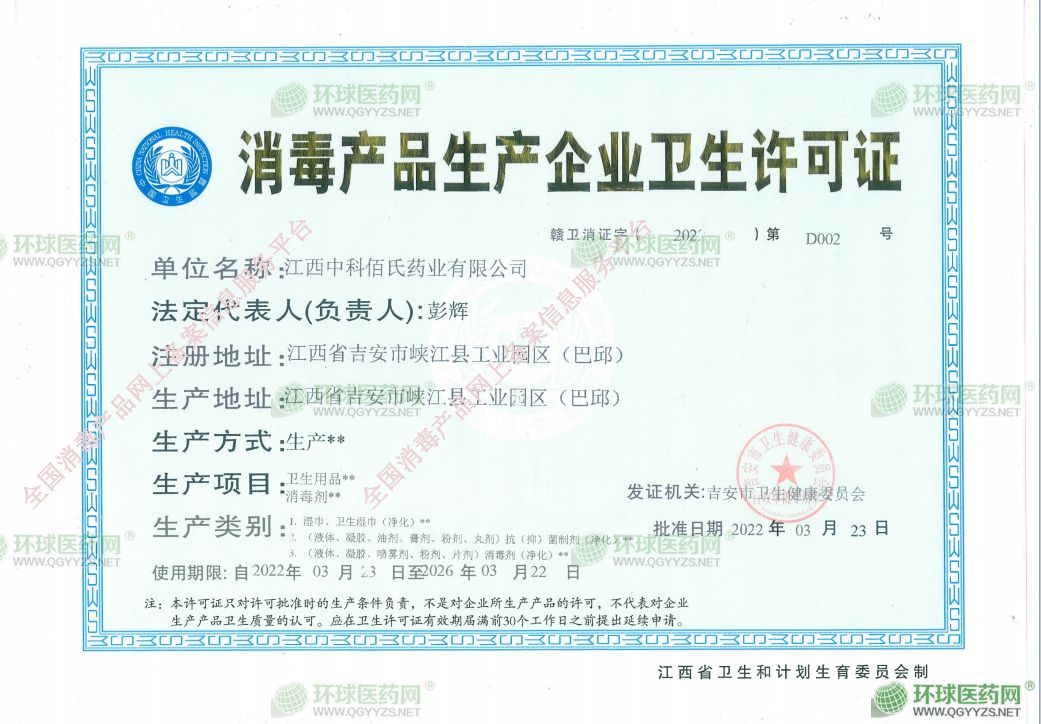 - 消毒產(chǎn)品生產(chǎn)企業(yè)衛(wèi)生許可證