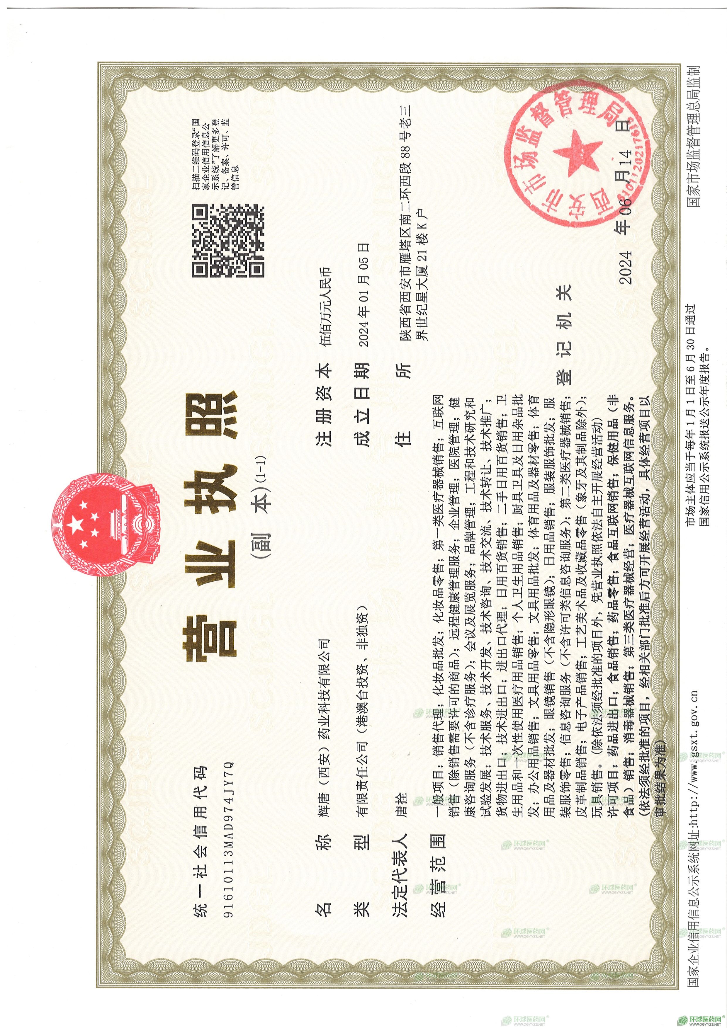 輝唐(西安)藥業(yè)科技有限公司成立于2024年01月05日,注冊地位于陜西省西安市雁塔區(qū)南二環(huán)西段88號老三界世紀星大廈21樓K戶,法定代表人為唐拴。經(jīng)營范圍包括一般項目:銷售代理;化妝品批發(fā);化妝品零售;**類醫(yī)療器械銷售;互聯(lián)網(wǎng)銷售(除銷售需要許可的商品);遠程健康管理服務(wù);企業(yè)管理;醫(yī)院管理;健康咨詢服務(wù)(不含診療服務(wù));會議及展覽服務(wù);品牌管理;工程和技術(shù)研究和試驗發(fā)展;技術(shù)服務(wù)、技術(shù)開發(fā)、技術(shù)咨詢、技術(shù)交流、技術(shù)轉(zhuǎn)讓、技術(shù)推廣;貨物進出口;技術(shù)進出口;進出口代理;日用百貨銷售;二手日用百貨銷售;衛(wèi)生用品和一次性使用醫(yī)療用品銷售;個人衛(wèi)生用品銷售;廚具衛(wèi)具及日用雜品批發(fā);辦公用品銷售;文具用品零售;文具用品批發(fā);體育用品及器材零售;體育用品及器材批發(fā);眼鏡銷售(不含隱形眼鏡);日用品銷售;服裝服飾批發(fā);服裝服飾零售;信息咨詢服務(wù)(不含許可類信息咨詢服務(wù));第二類醫(yī)療器械銷售;皮革制品銷售;電子產(chǎn)品銷售;工藝美術(shù)品及收藏品零售(象牙及其制品除外);玩具銷售。(除依法須經(jīng)批準的項目外,憑營業(yè)執(zhí)照依法自主開展經(jīng)營活動)許可項目:藥品進出口;食品銷售;藥品零售;食品互聯(lián)網(wǎng)銷售;保健用品(非食品)銷售;消毒器械銷售;第三類醫(yī)療器械經(jīng)營;醫(yī)療器械互聯(lián)網(wǎng)信息服務(wù)。(依法須經(jīng)批準的項目,經(jīng)相關(guān)部門批準后方可開展經(jīng)營活動,具體經(jīng)營項目以審批結(jié)果為準)