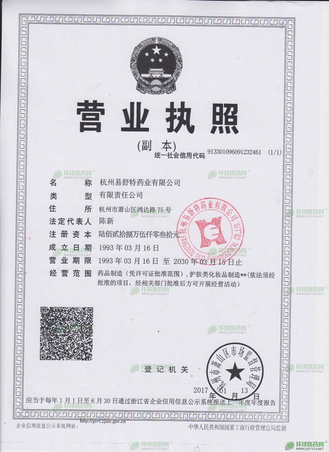 發(fā)證機關: 浙江省藥品監(jiān)督管理局