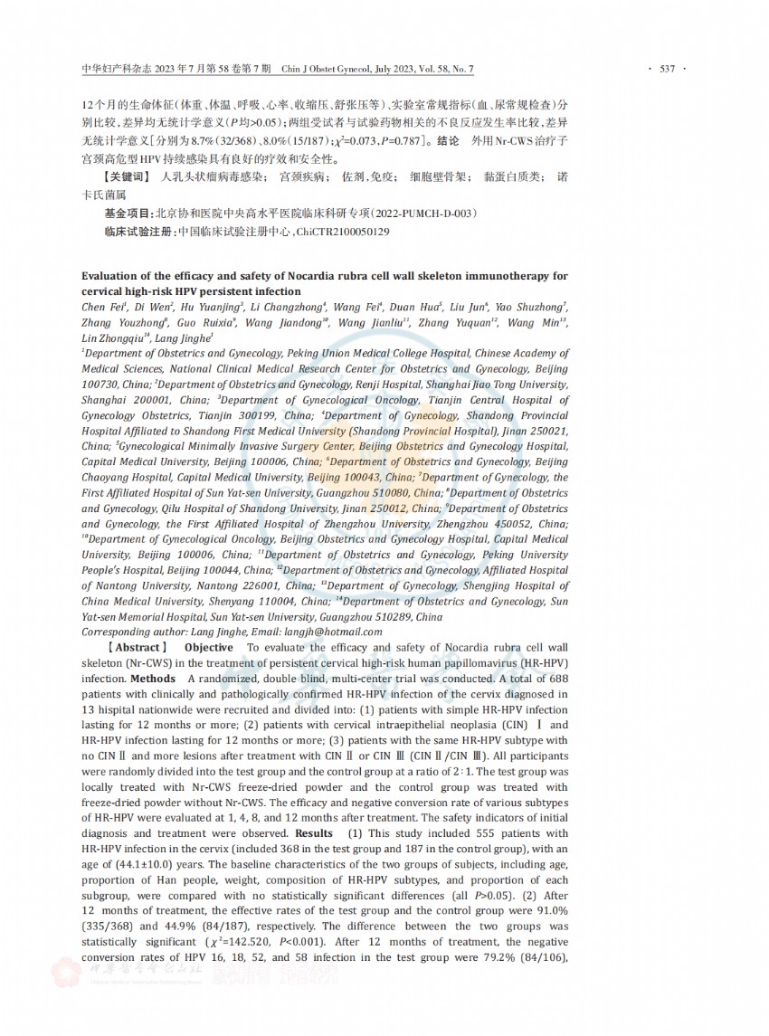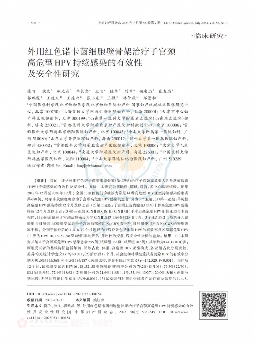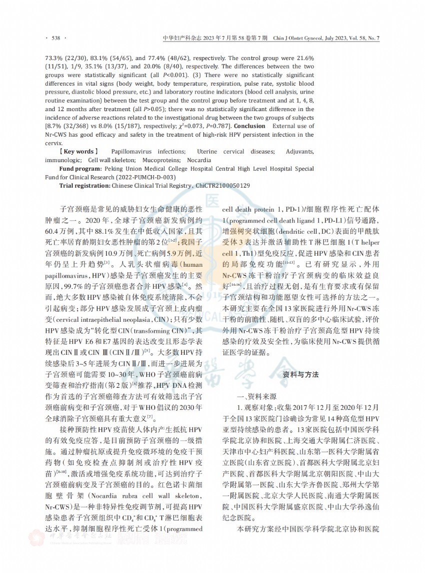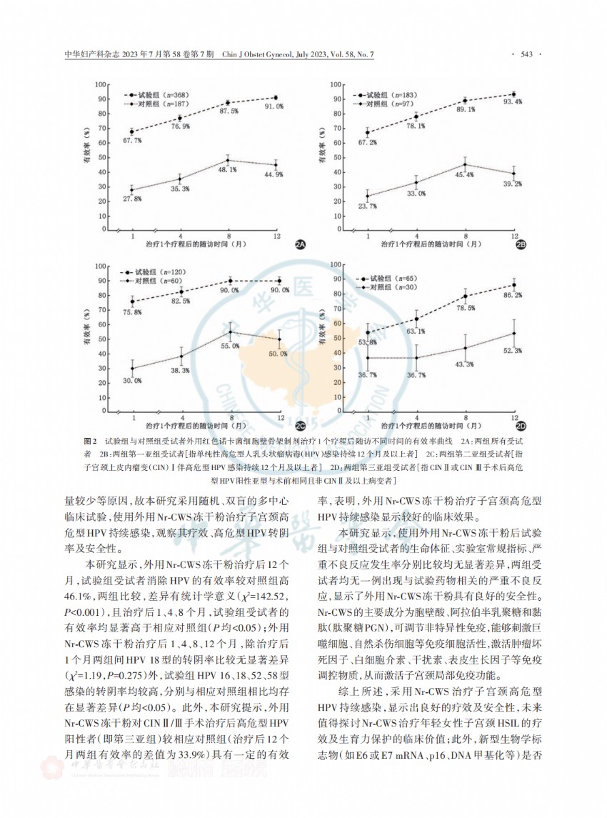 外用紅色諾卡菌細(xì)胞壁骨架治療子宮頸高危型HPV持續(xù)感染的有效性及有效性研究