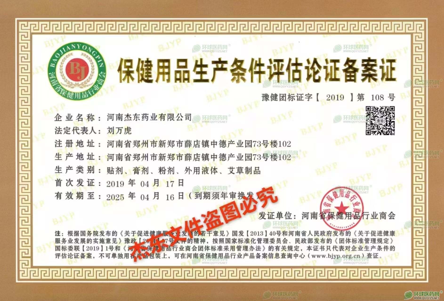 - 保健用品生產(chǎn)條件評估論證備案證