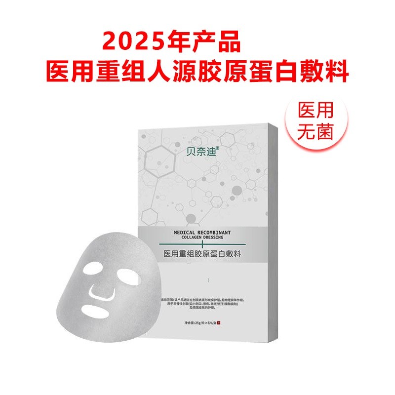 采用醫(yī)用級重組膠原蛋白原料,面膜型產(chǎn)品,可在醫(yī)美機(jī)構(gòu)術(shù)、電商平臺等渠道中推廣。產(chǎn)品貼合度高、修復(fù)力強(qiáng),憑借 “醫(yī)用敷料” 資質(zhì),易獲專業(yè)渠道信任。