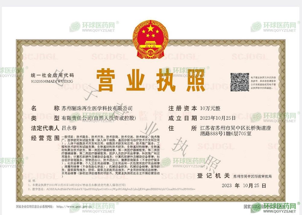蘇州驪珠再生醫(yī)學(xué)科技有限公司