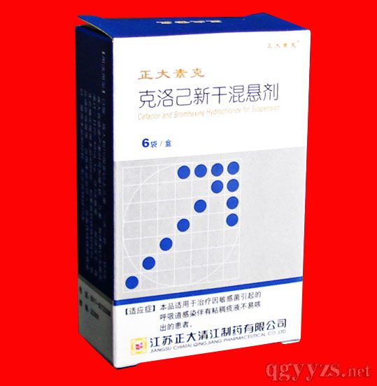 - 【規(guī)格】每袋含頭孢克洛250毫克與鹽酸溴己新8毫克(按溴己新計(jì))
