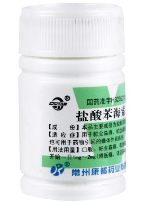 【用法用量】口服帕金森病、帕金森綜合征,開始一日1~2mg(半片~1片),以后每3~5日增加2mg(1片),至療效最好而又不出現(xiàn)副反應(yīng)為止,一般一日不超過10mg(5片),分3~4次服用,須長期服用。極量一日20mg(10片)。藥物誘發(fā)的錐體外系疾患,第一日2~4mg(1~2片),分2~3次服用,以后視需要及耐受情況逐漸增加至5~10mg(2.5~5片)。老年患者應(yīng)酌情減量。