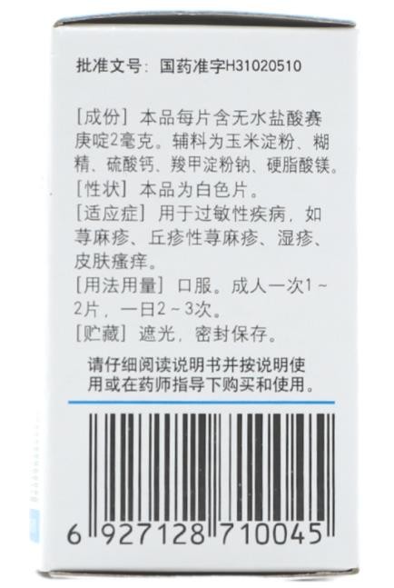 【規(guī)格】2毫克(以鹽酸賽庚啶計)