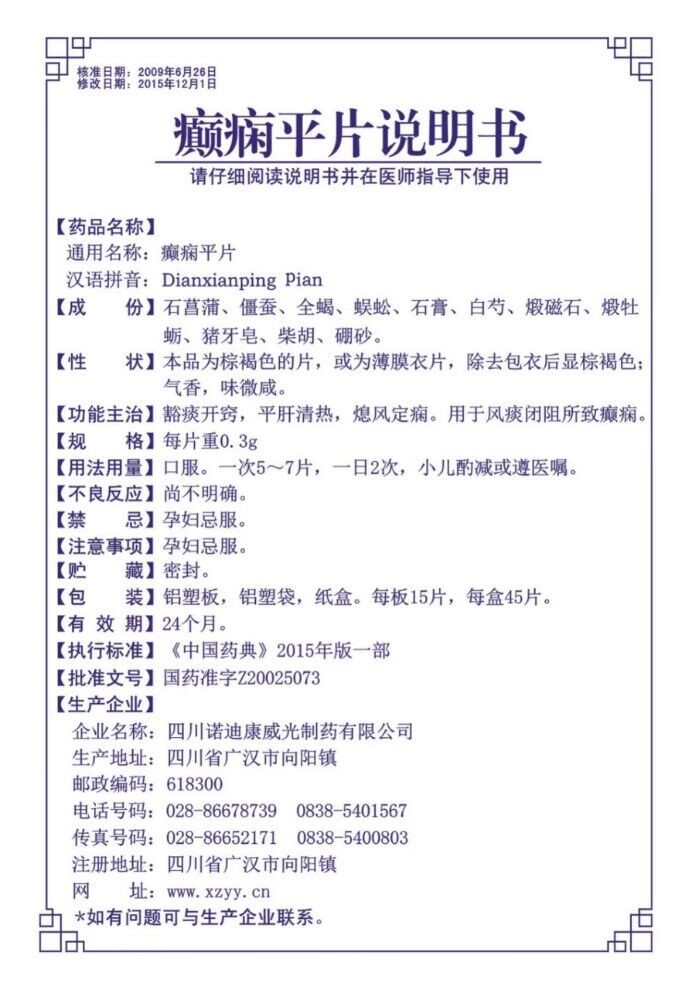 - 本頁面信息僅供參考,請以產(chǎn)品實(shí)際附帶說明書為準(zhǔn)。 威光 癲癇平片 說明書圖片版 威光癲癇平片 說明書文字版 【藥品名