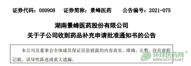 - 9月11日,景峰醫(yī)藥發(fā)布公告稱,其子公司景誠(chéng)制藥收到國(guó)家藥監(jiān)局核準(zhǔn)簽發(fā)的冰梔傷痛氣霧劑的《藥品補(bǔ)充申請(qǐng)批準(zhǔn)通知書》。