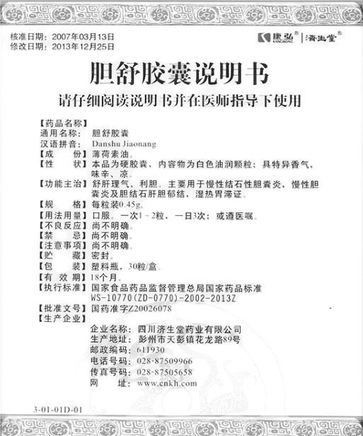 - 康弘濟(jì)生堂膽舒膠囊說明書