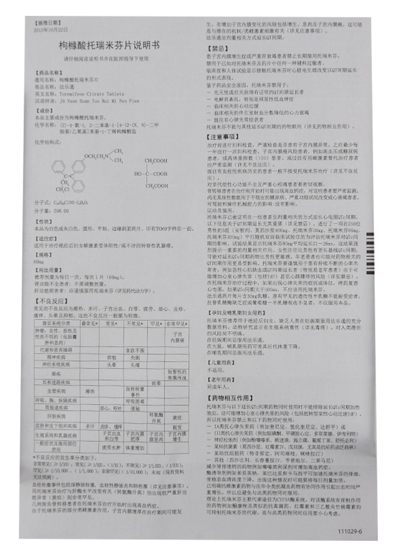 西藥、處方藥、醫(yī)保乙類。絕經(jīng)后婦女雌激素受體陽性或不詳?shù)霓D(zhuǎn)移性乳腺癌。Orion Corporation公司及福安藥業(yè)集團寧波天衡制藥有限公司生產(chǎn)。目前寧波市醫(yī)藥技術(shù)研究有限公司在環(huán)球醫(yī)藥網(wǎng)招商。【藥品名稱】通用名稱:枸櫞酸托瑞米芬片