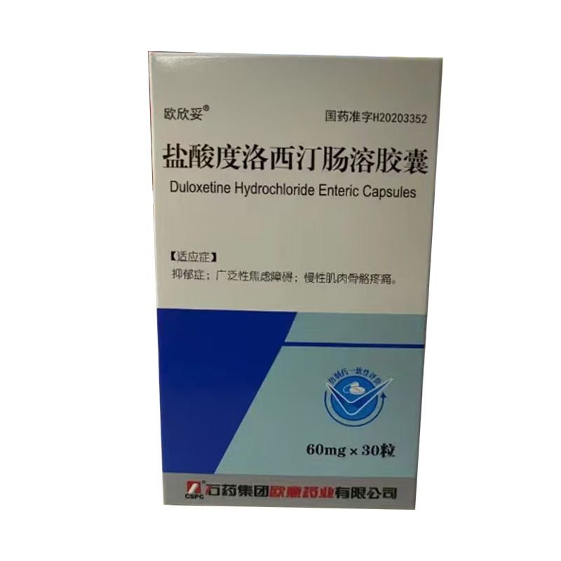 吞服,不要咀嚼和壓碎。起始治療: 推薦本品的起始劑量為40mg/日(20mg一日二次)至60mg/日(一日一次或30mg一日二次),不考慮進(jìn)食情況,F(xiàn)有的臨床研究數(shù)據(jù)未證實(shí)劑量超過(guò)60mg/日將增加療效。維持/繼續(xù)長(zhǎng)期治療: 一般認(rèn)為抑郁癥的急性發(fā)作需要數(shù)月或更長(zhǎng)時(shí)間的藥物治療,但尚沒(méi)有充足的試驗(yàn)資料來(lái)確定患者應(yīng)該連續(xù)服用度洛西汀治療達(dá)多長(zhǎng)時(shí)間。對(duì)此類患者,應(yīng)對(duì)其接受維持治療的必要性以及相應(yīng)所需的劑量作定期評(píng)估。特殊人群腎臟功能受損患者的用量——對(duì)于晚期腎臟疾病(需要透析的)患者,或有嚴(yán)重腎臟功能損害(估計(jì)肌酐清除率 30ml/min的)患者,建議不用本品(見(jiàn)【藥理毒理】)。肝功能不全的患者的用量——建議有任何肝功能不全的患者避免服用本品(見(jiàn)【藥理毒理】和【注意事項(xiàng)】)老年患者的用量——對(duì)于老年患者,建議不必根據(jù)年齡調(diào)整劑量。與任何藥物一樣,治療老年患者時(shí)應(yīng)該慎重。在老年患者中個(gè)體化調(diào)整劑量時(shí),增加劑量時(shí)應(yīng)該額外小心。對(duì)妊娠后三個(gè)月的女性患者的治療——在妊娠后三個(gè)月內(nèi)接觸SSRls或SNRls(五羥色胺和去甲腎上腺素再攝取抑制劑)的新生兒,產(chǎn)生的并發(fā)癥會(huì)導(dǎo)致住院時(shí)間延長(zhǎng)、需要呼吸支持和管道喂食(見(jiàn)【注意事項(xiàng)】)。當(dāng)孕期女性用度洛西汀治療時(shí),在妊娠后三個(gè)月.醫(yī)生應(yīng)對(duì)治療的潛在風(fēng)險(xiǎn)和收益進(jìn)行認(rèn)真的評(píng)價(jià)。醫(yī)生應(yīng)考慮在妊娠晚期逐漸減少度洛西汀的用量。度洛西汀停藥: 已有報(bào)道本品及其他SSRls和SNRls藥物的停藥反應(yīng)(見(jiàn)【注意事項(xiàng)】)。停藥時(shí)應(yīng)對(duì)這些癥狀進(jìn)行監(jiān)測(cè)。建議盡可能的逐漸減藥,而不是驟停藥物。由于減少藥物劑量或停藥而引起了無(wú)法耐受的癥狀時(shí),可以考慮恢復(fù)使用以往的處方劑量。隨后再以更慢的速度減藥。與單胺氧化酶抑制劑(MAOI)間的換藥: MAOI停藥后至少14天才可以開(kāi)始本品的治療。本品停藥后至少5天才可以開(kāi)始MAOI的治療(見(jiàn)【禁忌】和【警告】)。