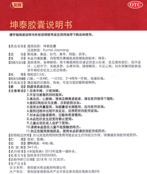 - 本頁面信息僅供參考,請以產(chǎn)品實際附帶說明書為準(zhǔn)。 貴陽新天藥業(yè) 和顏坤泰膠囊 說明書圖片版 貴陽新天藥業(yè) 和顏坤泰膠囊 說明